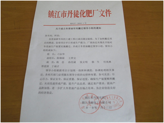 關(guān)于成立冬青油車(chē)間搬遷領(lǐng)導小組的通知